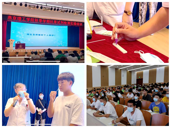 本网讯(学校疫情防控办公室 宣传部 李楠 付盛通)为有效应对当前疫情防控的形势,进一步落实疫情防控要求,提升师生抗原检测能力,8月17日,学校疫情防控办公室组织举办抗原试剂检测实操培训,在校在岗教职工及在校学生代表参加了此次培训会。