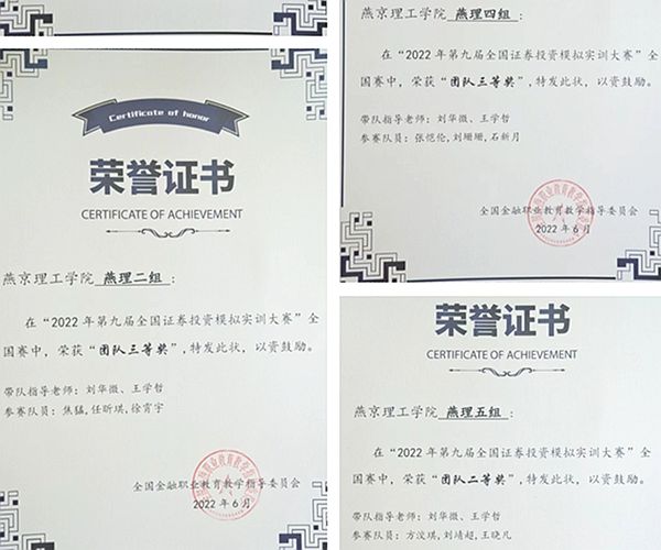 近日,由全国金融职业教育教学指导委员会主办的“2022年全国金融与证券投资模拟实训大赛”圆满落幕,国际商学院19级财务管理专业共有6支代表队参加比赛,与近500所院校、18448支队伍进行激烈角逐,最终5支队伍入围各级奖项。其中,3支队伍获得团体二等奖,2支队伍获得团体三等奖,两位指导教师获得“优秀指导教师”荣誉称号。
