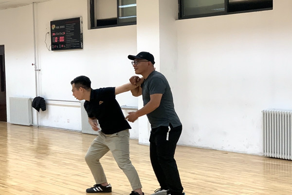 课上,郄玉石老师首先带领全体女教职工练习了一套基本搏击术,郄老师将动作分解进行详细讲解,带领女教职工练习所讲解的防身术,并一对一进行防身术动作指导。