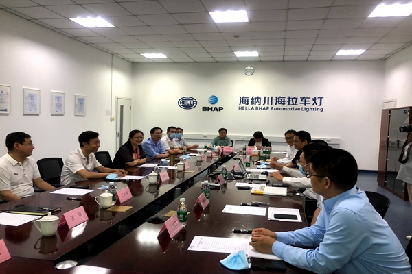 海纳川海拉(三河)车灯有限公司总经理王发浩、副总经理孙巍巍、人事行政总监方舟、技术总监陈方等出席了本次活动;燕郊高新区管委会副主任何海江、燕郊高新区社会事务办公室主任王永刚等领导到会莅临指导。