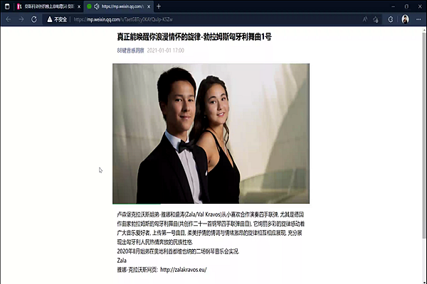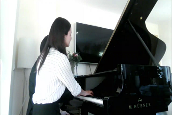 音乐会在雅娜和盛涛演奏的四手联弹曲目《舒伯特奏鸣曲第一乐章》和《舒伯特军队进行曲》中拉开帷幕;盛涛个人弹奏了《舒伯特奏鸣曲第二乐章》和《舒伯特奏鸣曲第三乐章》;苗慧丽老师演奏了俄罗斯钢琴曲---《迷人的玫瑰》;最后,尺八大师张听带来了两首原创作品---《孤鸿》和《眷》将线上音乐会推向高潮。
