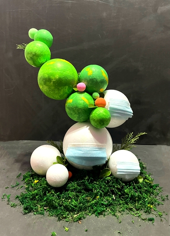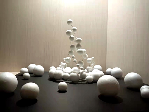 模型由多个颜色的球体组成,并呈现向上生长的形状,仿佛新芽于春日旺盛生长,蕴含勃勃生机,展现出来自春天的活力,也象征着人们抗击疫情积极向上的姿态和必胜的决心。