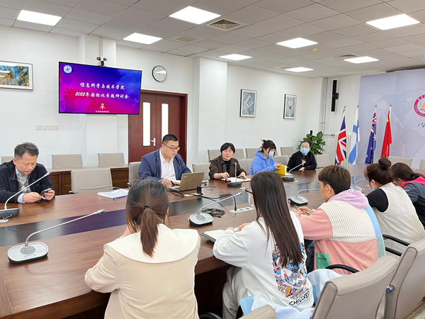 本网讯(信息科学与技术学院 刘亚男 李春潇 孙昊)4月15日下午,信息科学与技术学院以线上线下相结合的方式召开2022年国际化专题研讨会。信息科学与技术学院院长李丽芬、副院长陈炜、党总支书记朱雷,各专业负责人、教学秘书以及辅导员各年级组长参加了此次线上线下会议。