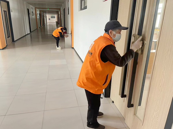 本网讯(后勤资产处 赵红芬)四月的燕理,海棠满园,我校后勤团队围绕第34个爱国卫生月活动主题“文明健康 绿色环保”深入开展新一轮爱国卫生运动,结合疫情防控要求,对全校楼道、教室、会议室、卫生间、电梯间、垃圾站、宣传栏等场所进行全方位消杀,并对校园花箱及灯杆等设施进行重新刷漆,清理绿地、绿篱防寒拆除后的树叶,降低“杨柳絮”引发火灾的安全隐患,校园面貌焕然一新。