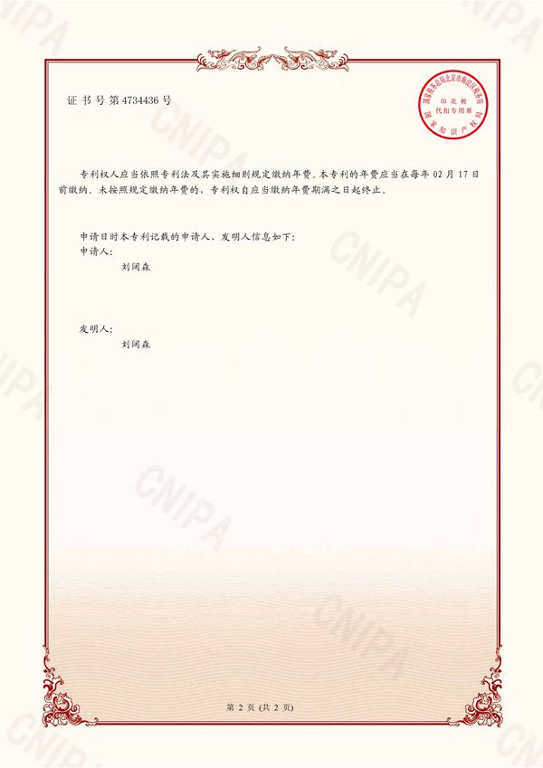 2020年2月,刘阔森向国家有关部门递交了“教室灯光智能控制照明系统”发明专利申请书,经过8个月的实审阶段,最终在2021年10月国家知识产权局决定授予专利权。他发明的教室灯光智能控制照明系统可根据天气、人数、空气湿度、亮度等条件自动调节灯光,并且解决了现有检修过程的麻烦。
