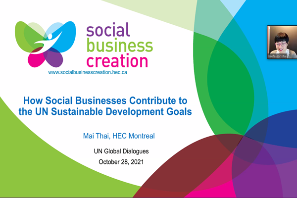 加拿大蒙特利尔高等商学院Mai Thai教授以“社会企业如何助力联合国可持续发展目标”为主题,说明“社会企业通过使用市场机制来应对社会挑战”。全球社会事业委员会执行董事王则开讲述了“联合国可持续发展目标与社会企业模式——如何助力共同富裕、乡村振兴与碳中和”,并分享中国在这三方面做出的努力和获得的成就。