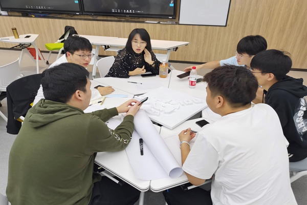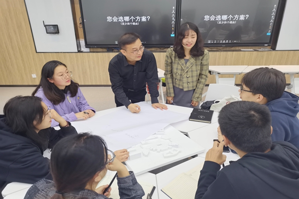 研讨期间,学生们主动向周院长提问。研讨结束后,各组依次上台分享讨论成果。这种教学方式有助于提高学生的协作能力和表达能力,强化学生发现问题并解决问题的能力,进而提升学生综合素质。最后,周院长介绍了该案例甲方的方案选择,并阐述了在建筑构思时如何能够确定有价值的方案。
