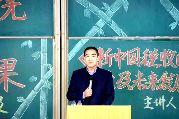 同时,徐巡视员向同学们梳理了新中国税收工作取得的主要成就。他认为税收收入职能的充分彰显,为中国现代化奠定了坚实的物质基础;同时,现代税收制度初步建立,为税收现代化提供了制度保障;税收征管制度日趋完善,为税收现代化注入了强大动力;税费服务体系建设提档升级,服务理念在主动作为中深入践行;国际税收治理实现跨越发展,大国税务在开放合作中展风范;最后,税务组织队伍建设不断加强,为税收现代化提供了组织保障。