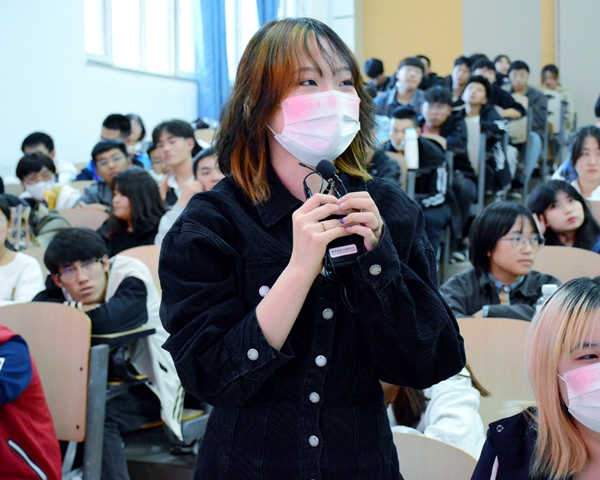 任教授依据两方面内容为同学们进行专业知识讲解。一方面是“如何做设计”。他以“吃、穿、住、行”为切入点,表明产品设计的物质基础和范围之广。任教授强调,设计基于人类行为,新时代的人们有属于这个时代的独特需求,我们应结合当下的社会背景与信息技术,深入洞察人们内心的情感需求,实现由物质向情感,由个体到群体,由单一产品向组织系统的转变,做出符合时代的设计。除此之外,他引用国内外经典案例,并结合自身作品,清晰讲述了产品设计的步骤与方法。任教授语言幽默诙谐,现场气氛热烈,学生纷纷表示受益颇多。