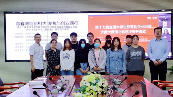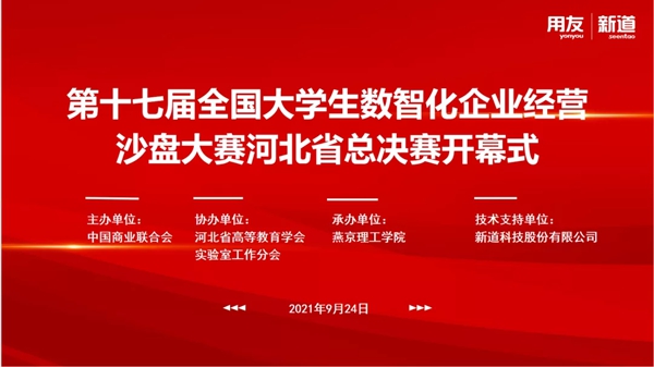 本网讯(会计学院 郭欣楠 贾棚仁)9月24日,由中国商业联合会主办、燕京理工学院承办、新道科技股份有限公司担任技术支持的第十七届全国大学生数智化企业经营沙盘大赛河北省总决赛在我校正式开幕。因疫情防控影响,本次开幕式改为线上举行。燕京理工学院党委副书记、副校长王传超,会计学院院长杨良,新道科技股份有限公司华北区总经理许鹏以及来自河北省参赛高校的部分老师一同出席了开幕式。