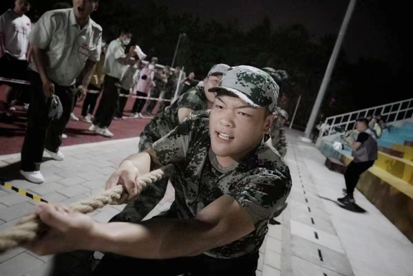 在这场齐心协力、奋勇拼搏的比赛里,广大新生感受到了“拧成一股绳”的强大合力,见证了笑容和汗水映射出团结的力量。丝不成线,独木不成林,短暂的比拼是为了更好地奋斗。本次拔河比赛不仅为军训生活增加了趣味和色彩,还锻炼了参训学生的身体素质,培养了学生的耐力和恒心,引导学生们增强重视集体力量、增进协同合作的意识,进一步奋发向上、凝心聚力,出色地完成军事训练任务。