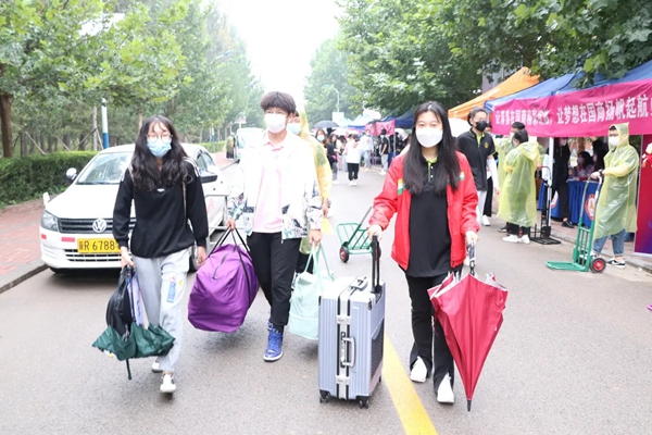 本次迎新仍采用线上线下相结合的方式。线上,志愿者积极与新生取得联系,交代流程,介绍校园,询问新生到校的时间。线下,志愿者帮助新生搬运行李、报到、打卡拍照、找寻宿舍等,有条不紊地进行着。迎新第二天,天空虽然下起了蒙蒙细雨,但是志愿者们迎接小萌新们的热情丝毫未减。在迎新之前,学校就做好应急预案,为志愿者们发放了雨衣,迎新活动正常进行。有了志愿者的帮助,新同学们表示轻松许多,学长学姐的热心使他们有了家的感觉,十分温暖。