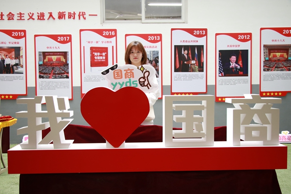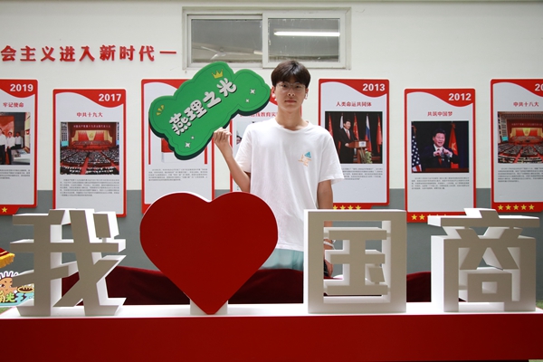 今年国际商学院特色迎新活动又有所创新,在报到教室前志愿者们精心布置的迎新现场引得过往行人留足注目。首先是“我爱国商”打卡处,国际商学院在此设置拍照点,为每位新同学拍照留念并上传图文直播平台供大家下载保存。大屏幕上滚动播放着学院的介绍与活动回顾,还在迎新现场摆放着国际商学院曾经获得的诸多奖项,带大家回顾了国际商学院的荣耀瞬间,增进了新生对国际商学院的荣誉感与归属感。