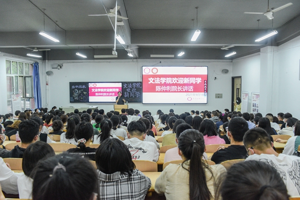 “新生第一课”、“开学第一跑”、“我与文法学院的第一张合影”等活动,都为新生入学加满仪式感。“仪式教育”承载着重要的价值观教育功能,是新生入学后接受教育、融入大学生活的必备环节。18日下午,文法学院院长陈仲利教授与党总支书记陈航为报到新生开讲“新生第一课”。课上,陈仲利院长欢迎各位同学加入文法大家庭,希望大家努力学习,用大学四年时间提升学习能力,拓宽知识积累,不断深造,秉承“勤奋努力,执着专注,持之以恒,诚信守时”的文法精神,学有所成,开启人生新历程。陈航书记寄语同学们要珍惜大学时光,培养高尚人格,努力成为德智体美劳全面发展的社会主义建设者和接班人,在“两个一百年”奋斗目标的历史交汇期,留下自己的青春印记。