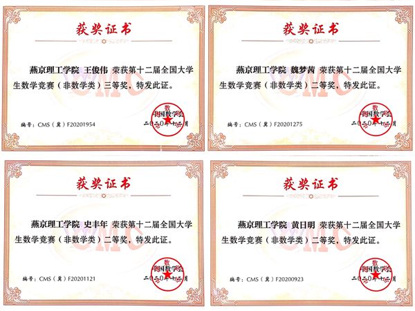 学生竞赛获奖证书