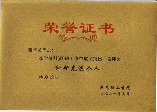 荣华英老师被评为“科研先进个人