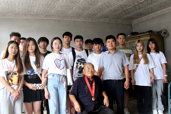 从闫书记家中离开后,师生们又赴前赵村第一任村支部书记闫成田家中开展社会实践。闫成田,1965年加入中国共产党,荣获光荣在党50周年勋章,曾任民兵连连长,前赵村第一任村支部书记。闫书记带领村民积极响应毛主席的号召,集体学大寨,投身到农业生产中,带领村民挑水种地,一直坚持为人民办实事。师生们和闫书记从建国初期聊到改革开放,又聊到当下的小康生活。闫书记开心的说:“现在日子可美了,跟着党和国家走,虽然经历过风风雨雨,但是苦日子都熬过来了,现在的日子越来越好了!”。