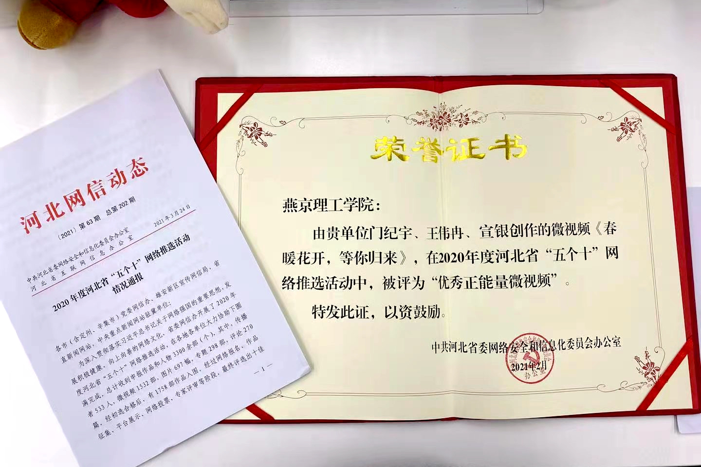中共河北省网络安全信息化委员办公室颁发证书