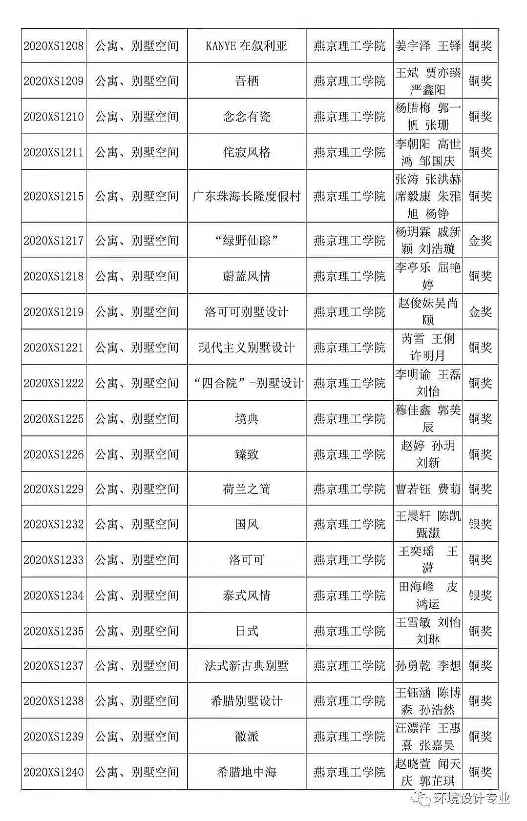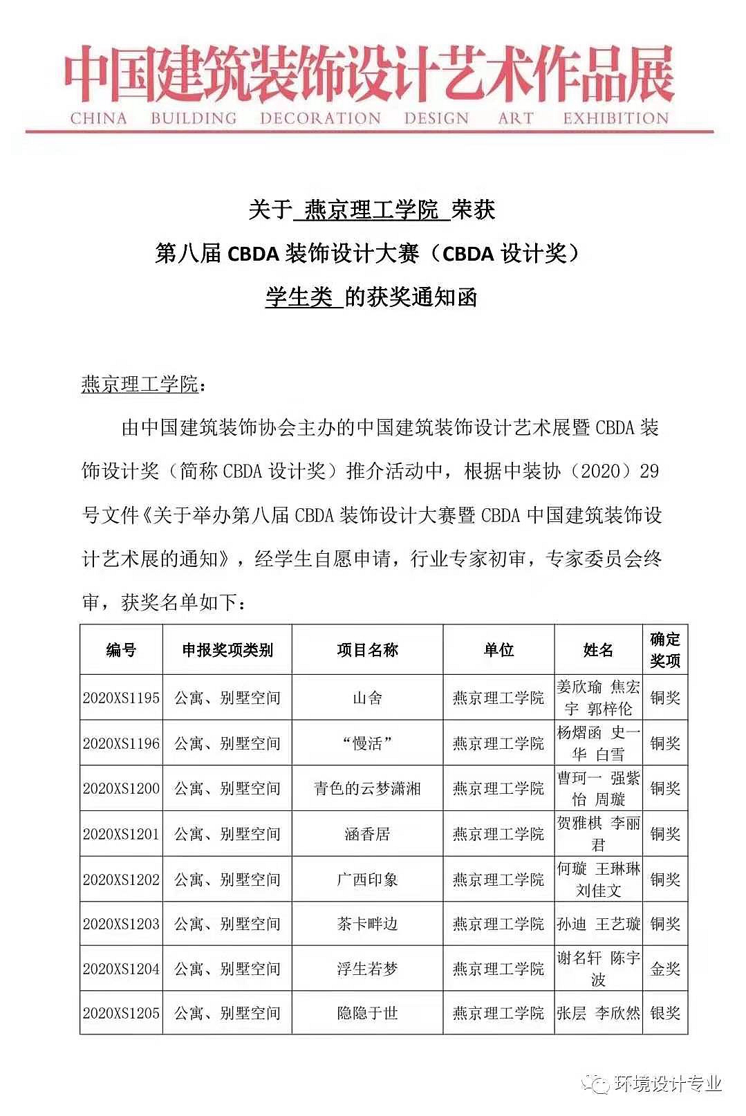 喜报|环境设计专业同学喜获第八届CBDA设计大赛金银铜奖64项