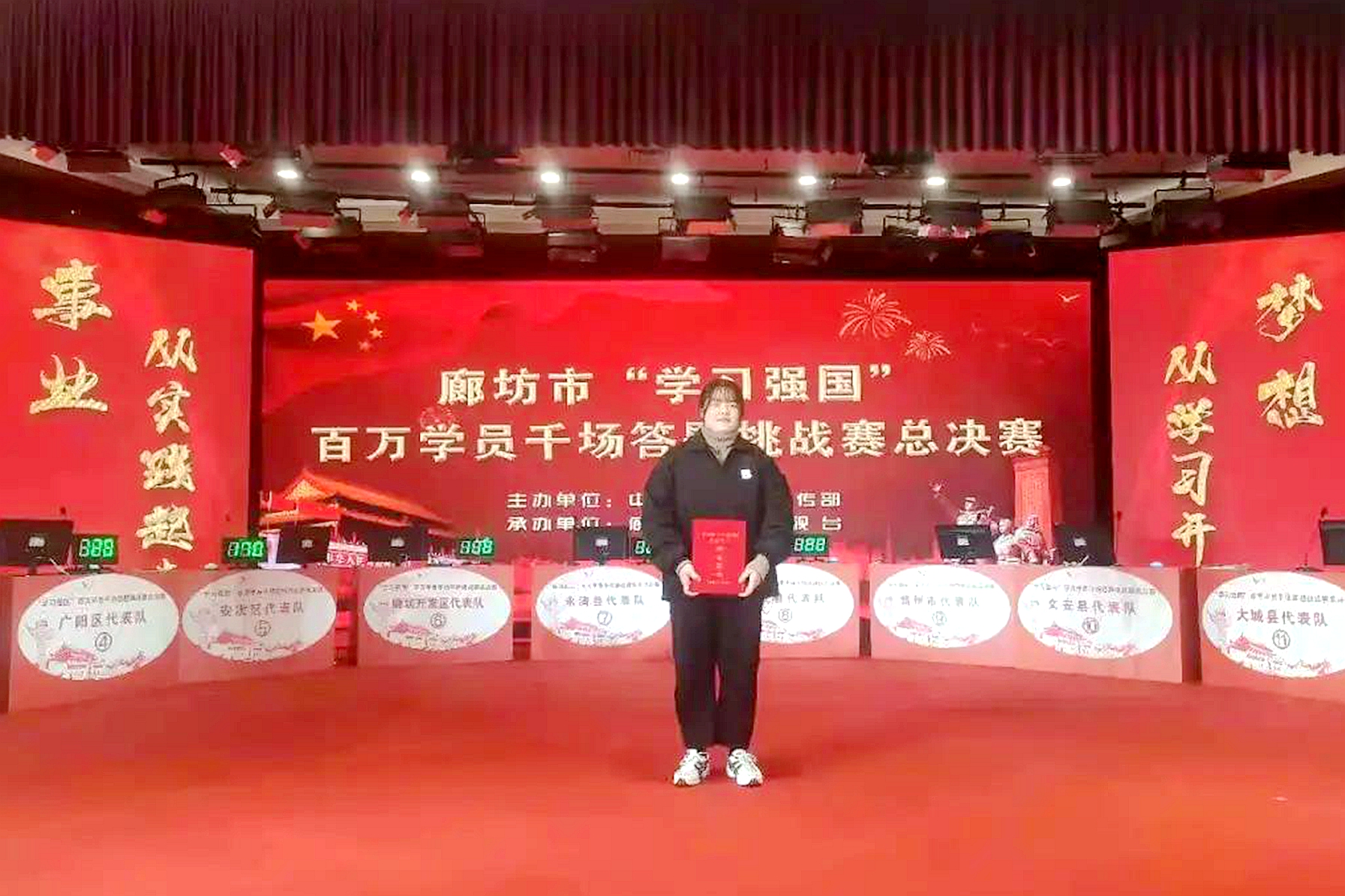 张畅是会计学院2020级审计2002班的一名普通同学,一直默默低头努力的她在近日却一鸣惊人,成为众人眼中歆羡的榜样。2020年底,廊坊市委宣传部开展了“学习强国”百万学员千场答题挑战赛活动,张畅在挑战赛中脱颖而出,获得中共廊坊市委教育工委授予的“全市教育系统‘学习强国’答题挑战赛‘十佳选手’”的荣誉称号。