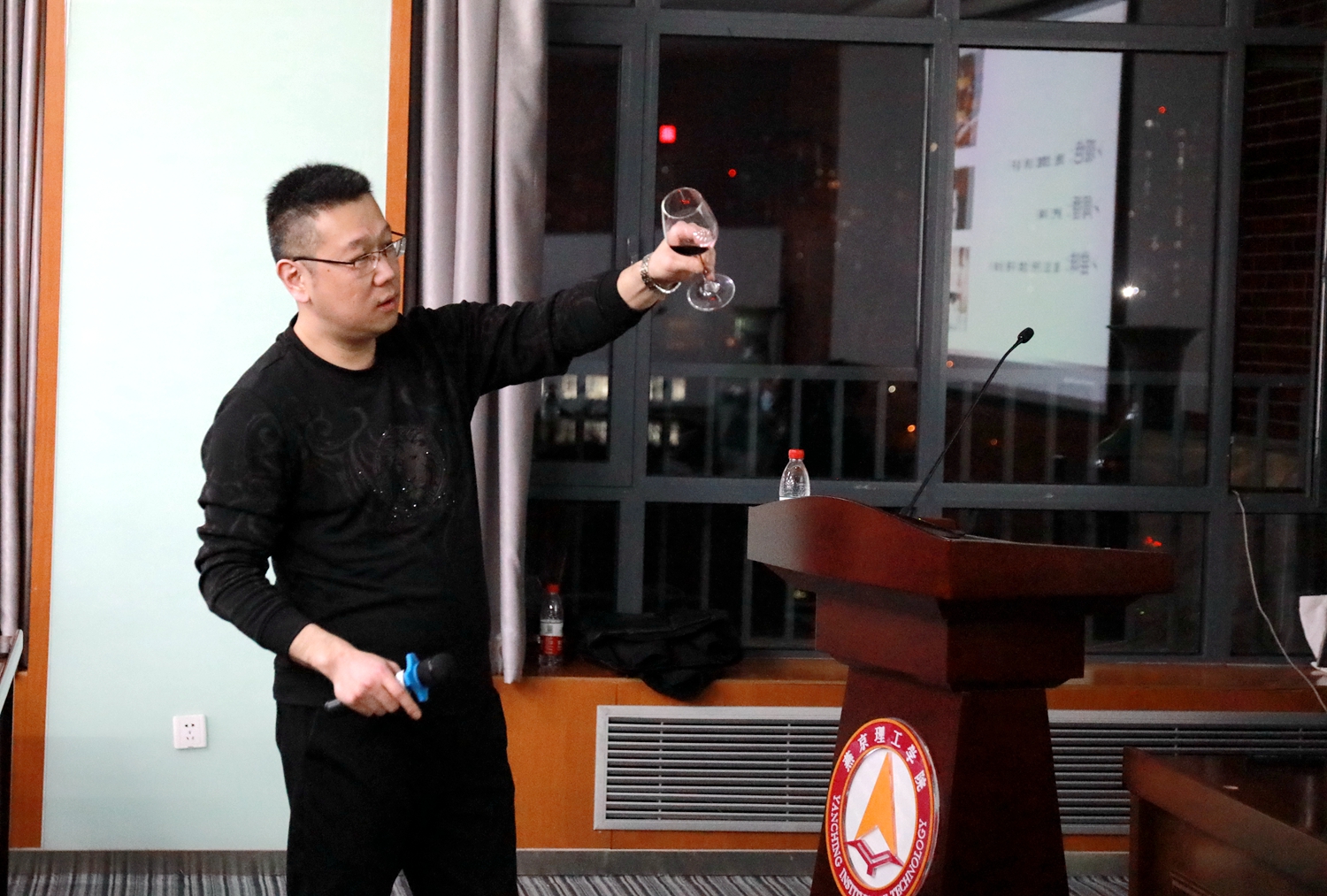 12月10日,国际教育学院举办了一场别开生面的红酒品鉴知识讲座和冷餐会,特邀希尔顿酒店餐饮部总监张鹏老师为本(专)硕直通班全体同学讲解红酒品鉴知识。