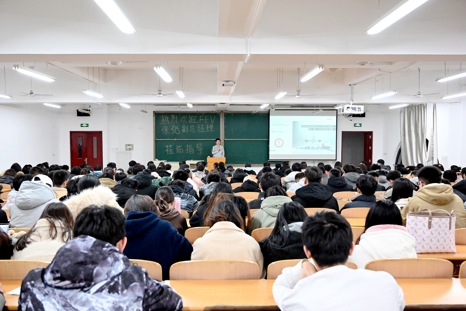 此次讲座,企业导师张驰就FEV公司的发展历史、行业地位、公司分布、业务范围、发展规划、企业文化等方面向师生做了详细介绍,对汽车行业产业链以及汽车行业产业链的核心环节进行了重点讲解。为了让同学们更好的了解此方面的知识,张驰老师采取问答方式,针对同学们关心的问题进一步补充说明,深入阐释。通过张老师的讲解,学生们深刻地认识到汽车行业是推动新一轮科技革命和产业变革的重要力量,是国民经济的重要支柱。汽车产业健康、可持续发展,事关人民群众的日常出行、社会资源的顺畅流通和生态文明的全面跃升。最后张副总着眼于汽车行业产业链的复杂性,从技术、工业设计、法律、财务、商学五个方面阐明了各方面人才在汽车行业都能发挥自己的潜能,同时强调了英语学习在汽车行业的重要性。