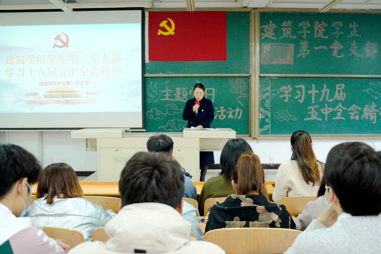 11月5日,建筑学院学生第一党支部和教工第二党支部分别在综合楼103、508召开主题的党日活动,认真学习贯彻党的十九届五中全会精神。