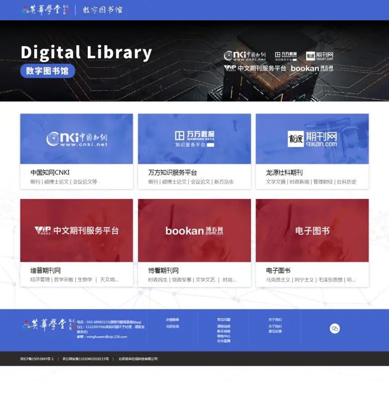 近日,英华学堂数字图书馆入驻燕理,学生注册登录后即可以在校内外使用。英华学堂数字图书馆拥有中国知网、万方数据库、龙源期刊、维普期刊、博看期刊、电子图书等资源,内容丰富,更新及时。
