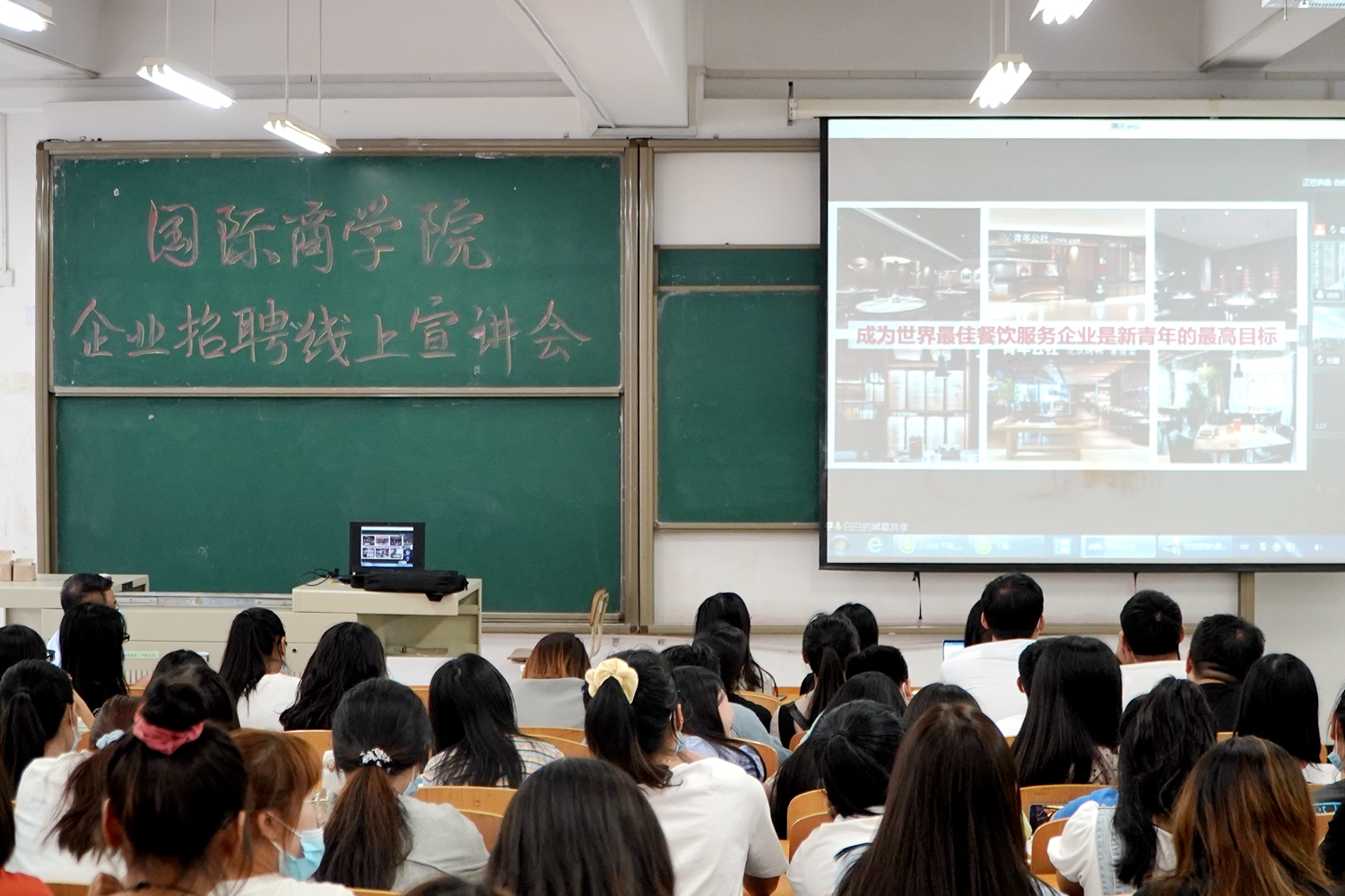 9月9日,校企对接暨企业招聘线上宣讲会邀请新世纪青年餐饮有限公司、顺峰饮食酒店管理股份有限公司、北京无名居美食有限公司、北京炙城武圣餐饮管理有限公司,为财务管理专业准毕业生进行线上宣讲。