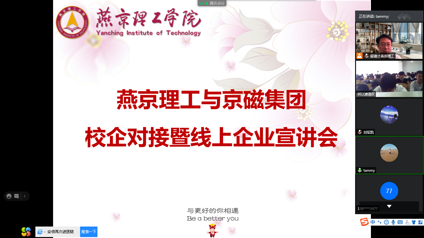9月9日,校企对接暨线上企业宣讲会继续举办,就业指导与校企合作中心邀请中国最大的、领先的烧结钕铁硼永磁材料生产厂家之一的京磁集团参加工学院专场视频宣讲会。