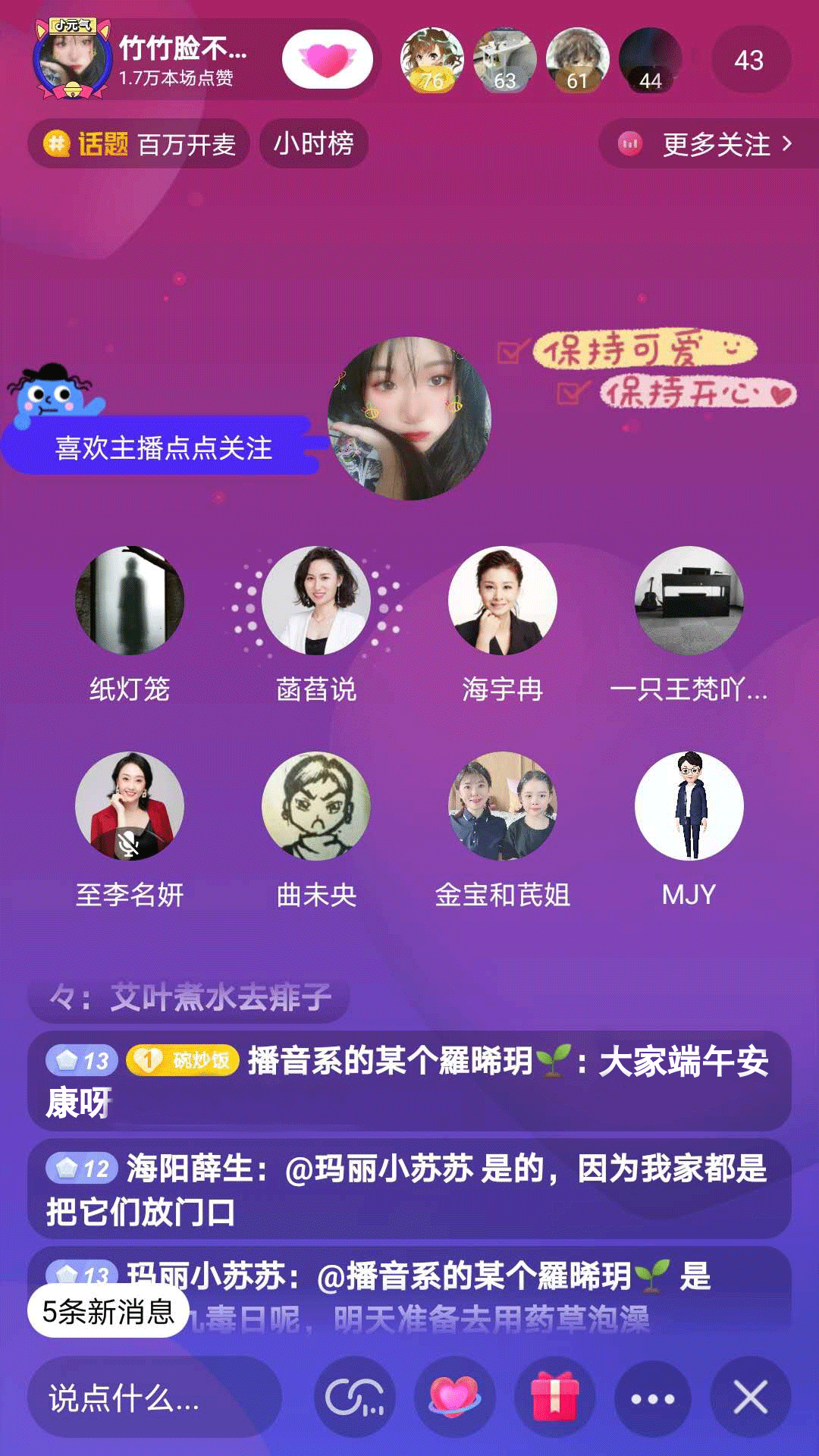 6月25日,农历五月初五,燕京理工学院传媒学院举办了以“我刚上大学那会儿”为话题的音频多人聊天端午节抖音直播活动,受到了师生们的热烈欢迎,北京交通台103.9《一路畅通》当红主播嘉佳老师,学校招生办公室副主任,传媒学院院长、书记以及学院多名专业教师和辅导员老师,学院学子、喜马拉雅当红主播王梵加入了直播连线。短短一个半小时的直播,累计参与1200余人,点赞量突破1.7W。
