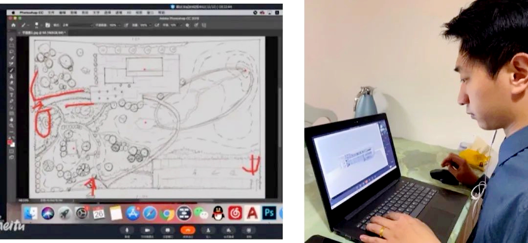 建筑学院李金泽老师谈到,在线上教学过程中,发现了诸如不能及时有效地查看同学们的上课情况等问题,因此为提高同学们的学习效率,李金泽老师通过直播答疑的方式来与同学们进行线上互动。在《建筑设计Ⅲ》和《风景园林规划设计Ⅱ》的课设作业中,霍达老师利用钉钉群,采用分享屏幕和实时改图等方法,让所有学生更加直观的进行学习与交流。霍达老师同时表示,此种方式便于在学生作图的过程中,能够及时帮助学生修改作品,防止学生因某个方向性错误导致作品的返工或作废。同时,霍达老师也利用云教学的灵活化优势,通过作业与专业活动相结合的方法来弥补学生不能在校参加实践活动的机会。