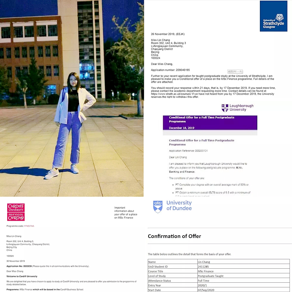 会计学院会计专业常琳同学收到了卡迪夫大学、萨里大学、斯克莱德大学的offer。