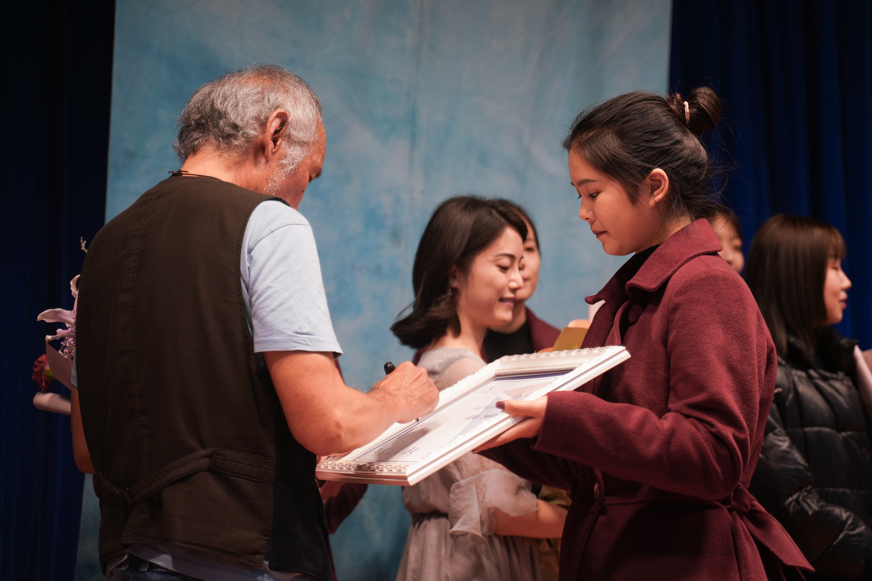 前岛幹雄老师表示,从两三年前就已经开始筹备这场话剧,来到燕京理工学院的几天里,和老师、同学们默契配合,能够在这样温馨的大家庭工作非常开心。他谈到,国外演出的形式等与国内是不同的,《老人与海》是一部60年代的经典作品,在时代和文化背景等方面可能跟年轻人有代沟,但是核心并没有变,所有的东西只要能够心与心交织在一起,就能开出绚烂的花。导演平田康之老师也讲到,有了前岛老师的加盟,本次演出就变得更加受人瞩目,极大的引起学生们的深思,从而从话剧中感悟人生哲学和道德品质。