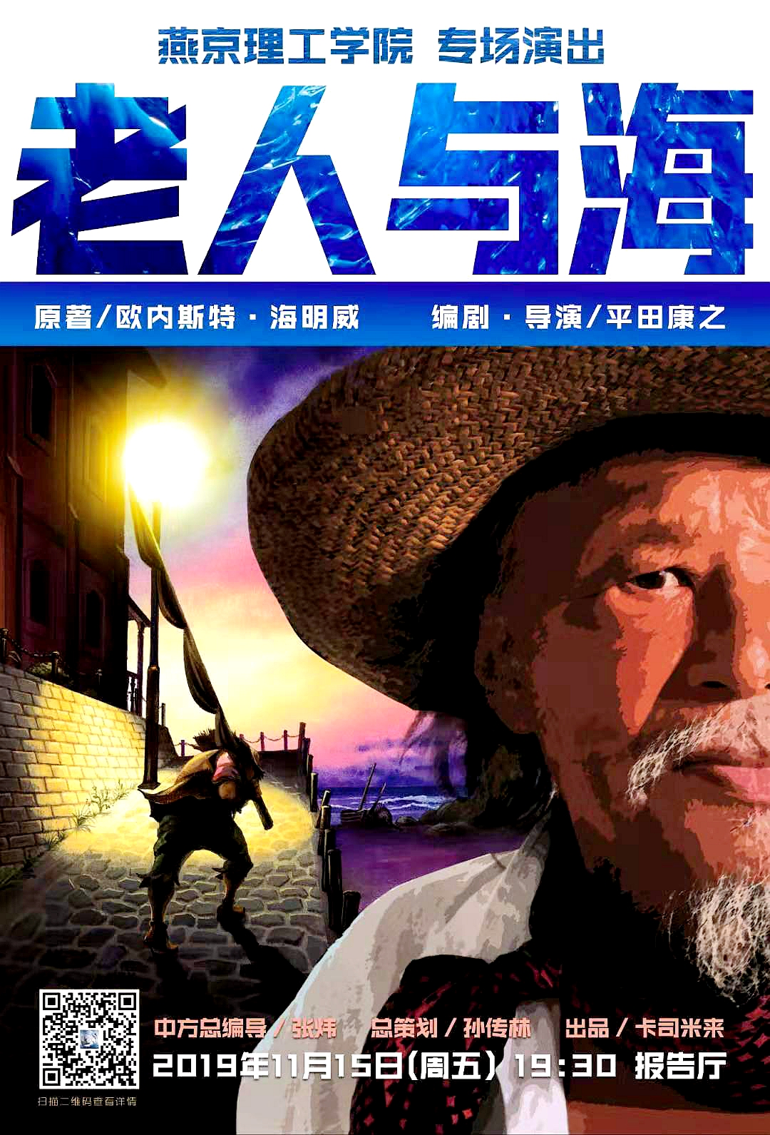 11月15日,日本著名演员平田康之携日本THEATER-Z剧团成员前岛幹雄、钢琴师小川夏果于燕京理工学院报告厅首演话剧《老人与海》,日本大使馆文化部参事官伊藤直人先生,北京日本俱乐部任正平,卡司米来文化传媒有限公司董事长杨洋、视觉总监大野清司,传媒学院党总支书记王伟冉及学院师生到场参与了本次活动。