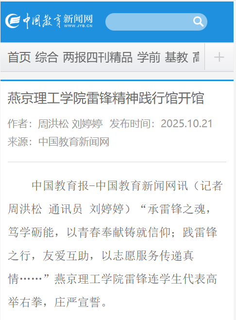 【中国教育新闻网】|燕京理工学院雷锋精神践行馆开馆