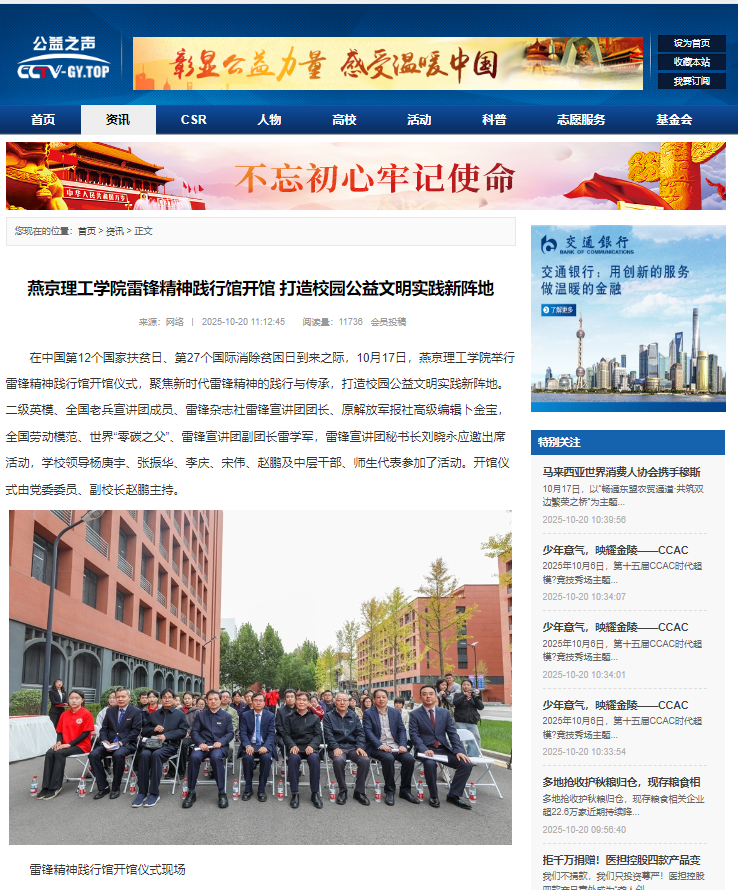 【公益之声】|燕京理工学院雷锋精神践行馆开馆 打造校园公益文明实践新阵地