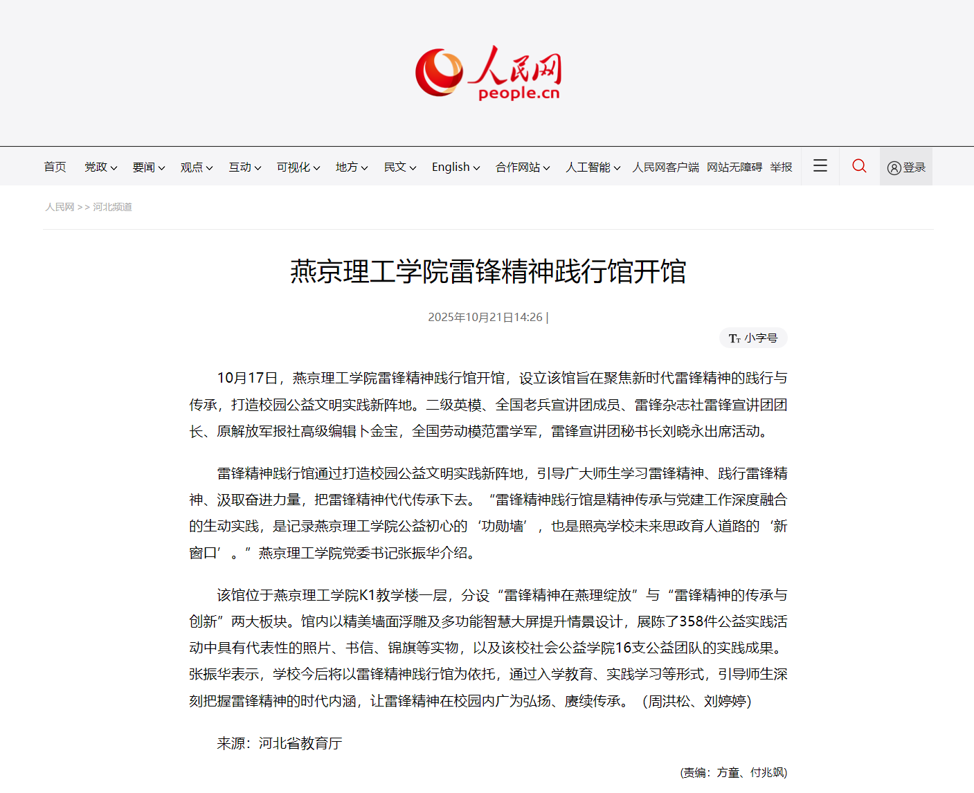 【人民网】|燕京理工学院雷锋精神践行馆开馆