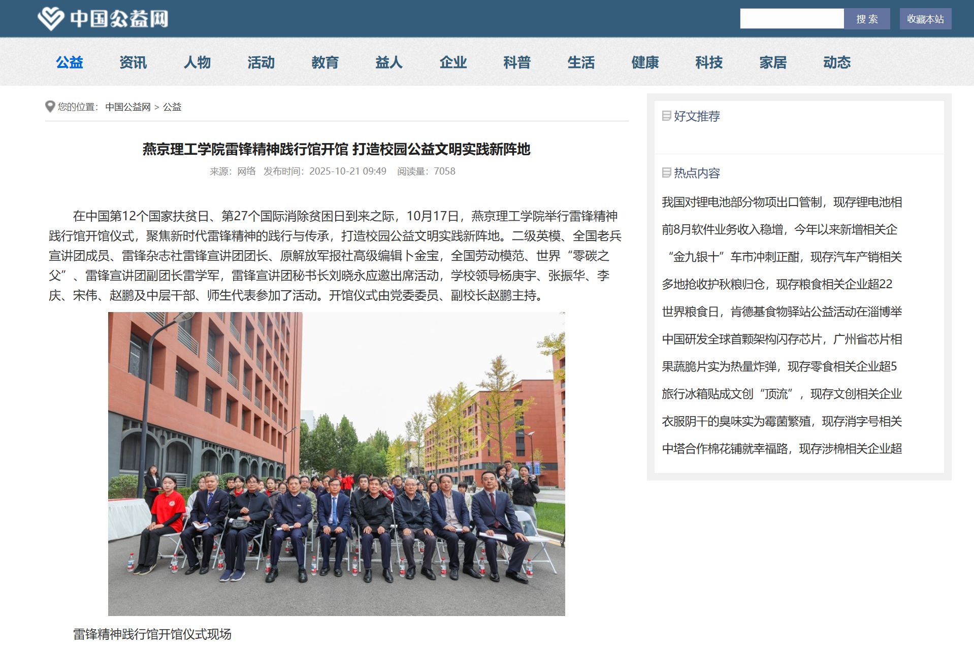 【中国公益网】|燕京理工学院雷锋精神践行馆开馆 打造校园公益文明实践新阵地