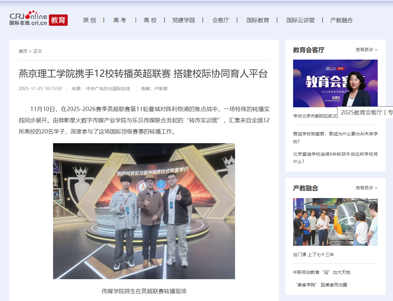 【国际在线】|燕京理工学院携手12校转播英超联赛 搭建校际协同育人平台