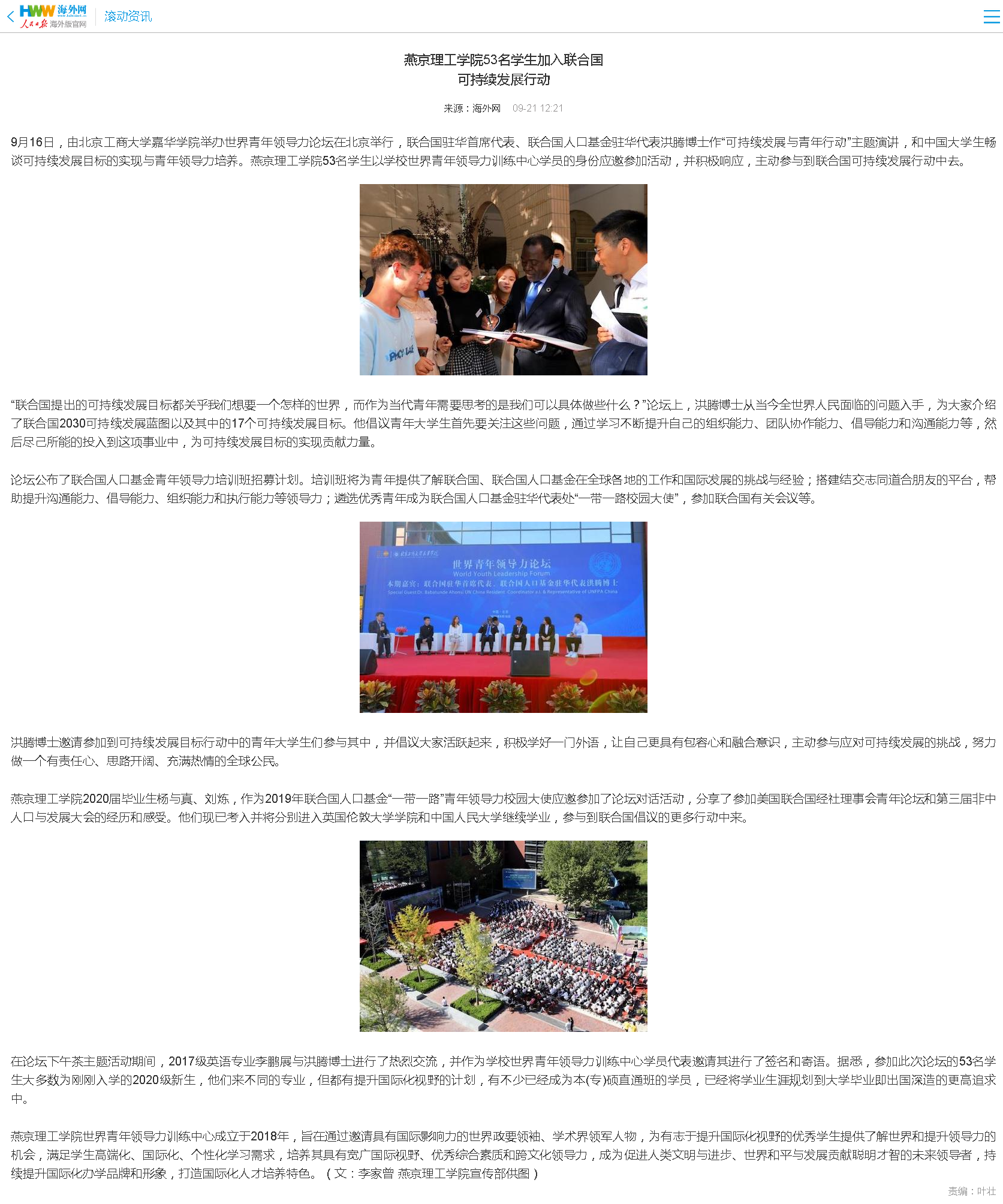 【人民日报海外网】燕京理工学院53名学生加入联合国可持续发展行动