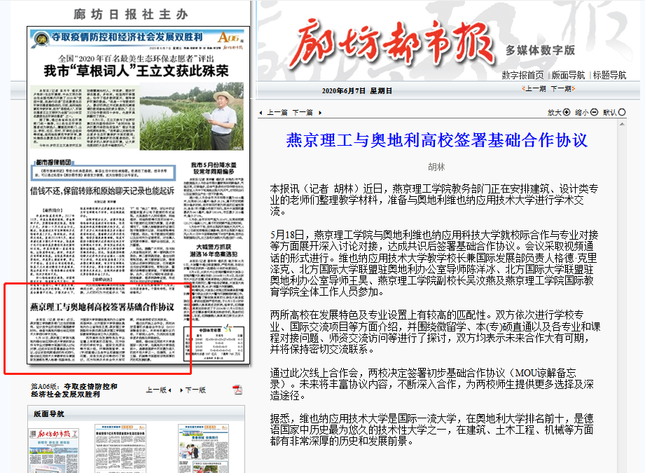 廊坊都市报6月7日A06版:燕京理工与奥地利高校签署基础合作协议