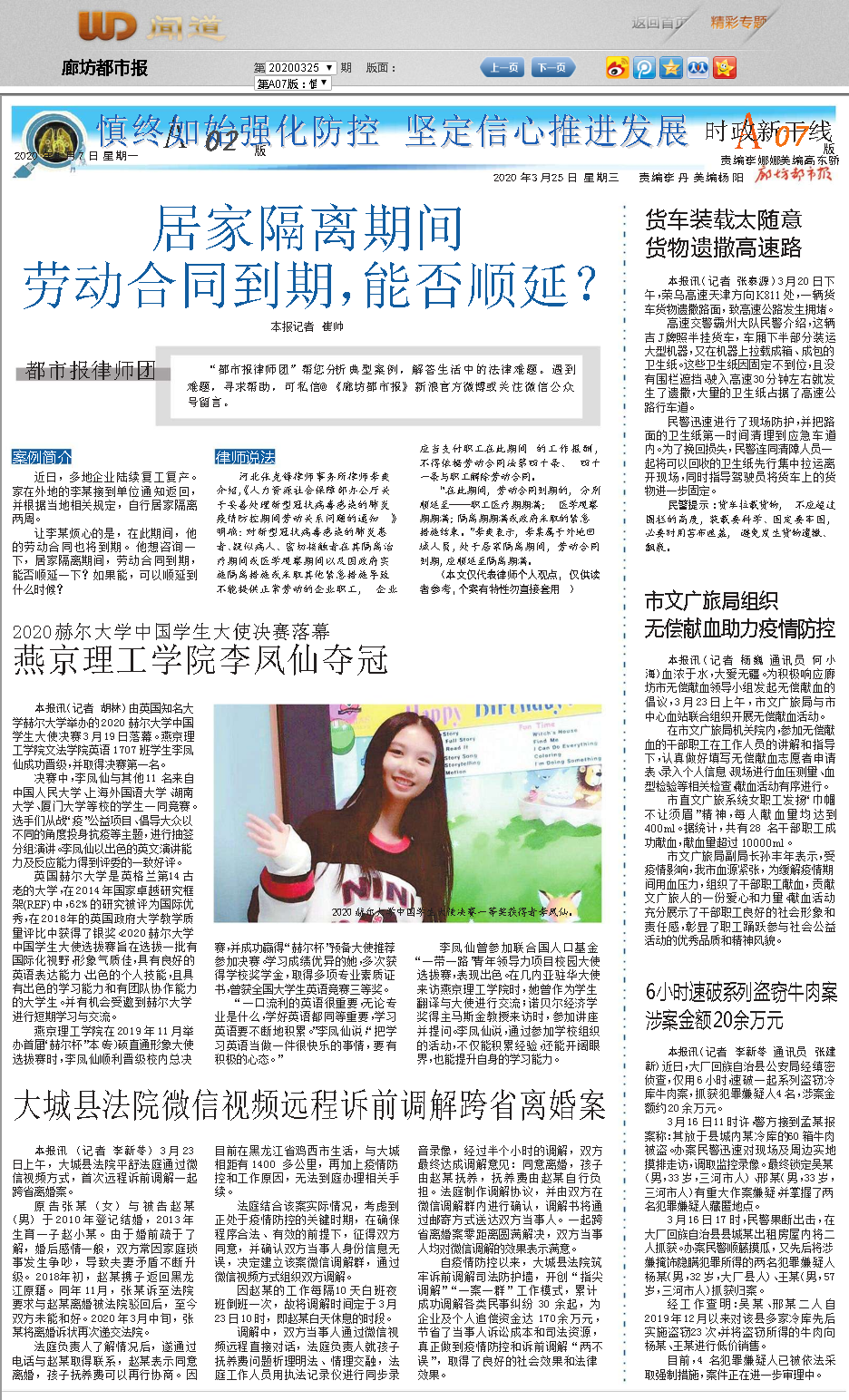 廊坊都市报:2020赫尔大学中国学生大使决赛落幕 燕京理工学院李凤仙夺冠