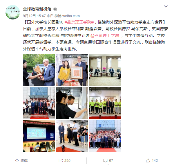 微博大V@ 全球教育新视角 【国外大学校长团到访#燕京理工学院#,搭建海外深造平台助力学生走向世界】