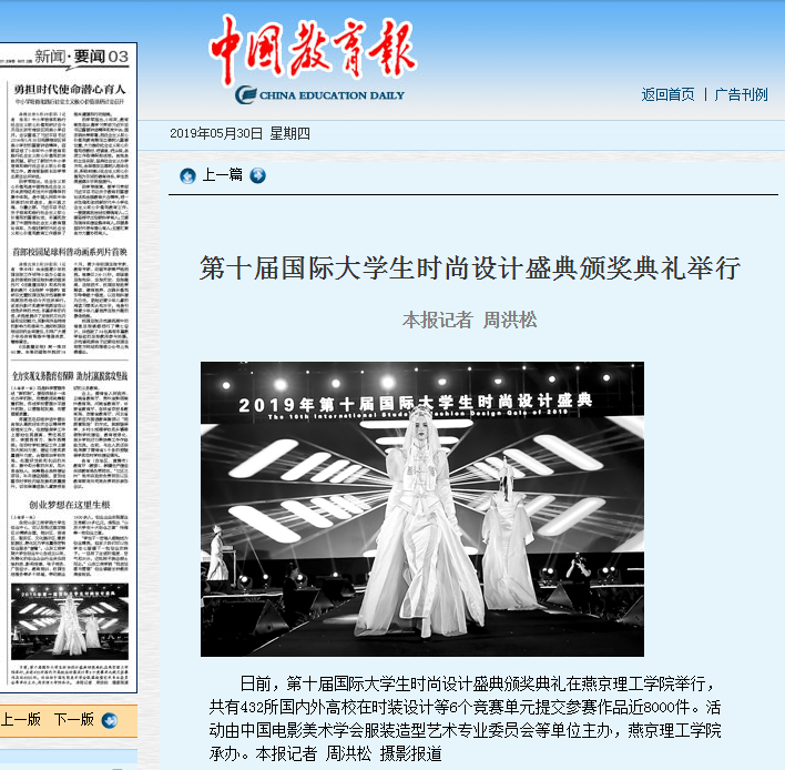 报道链接:中国教育报 第十届国际大学生时尚设计盛典颁奖典礼举行