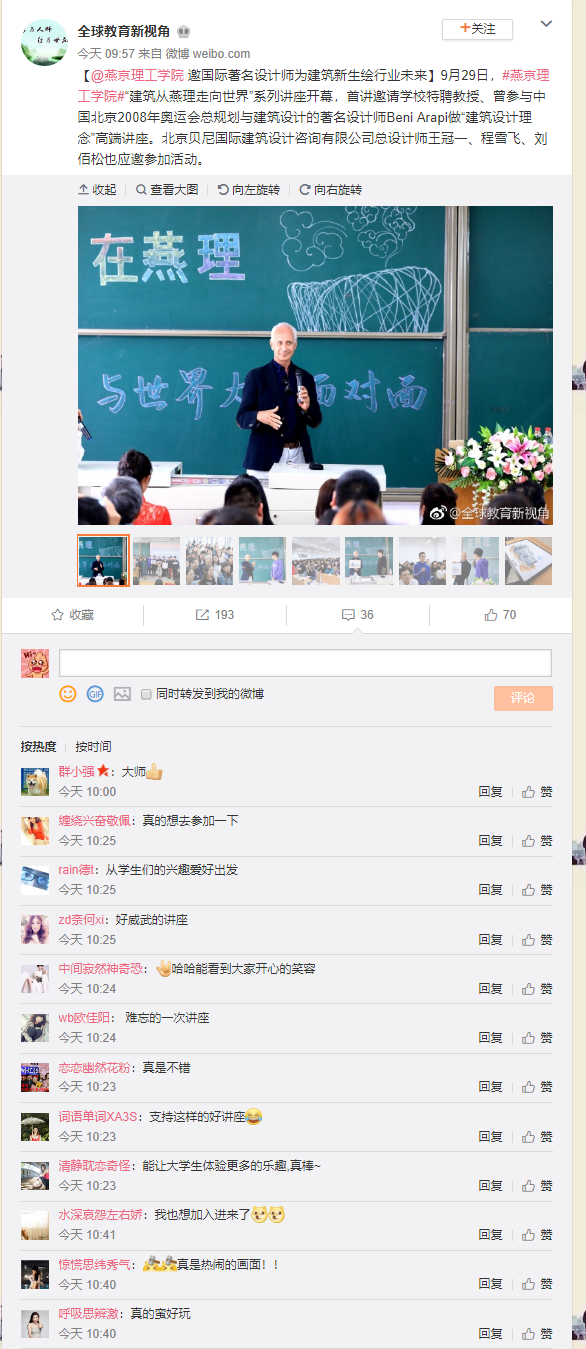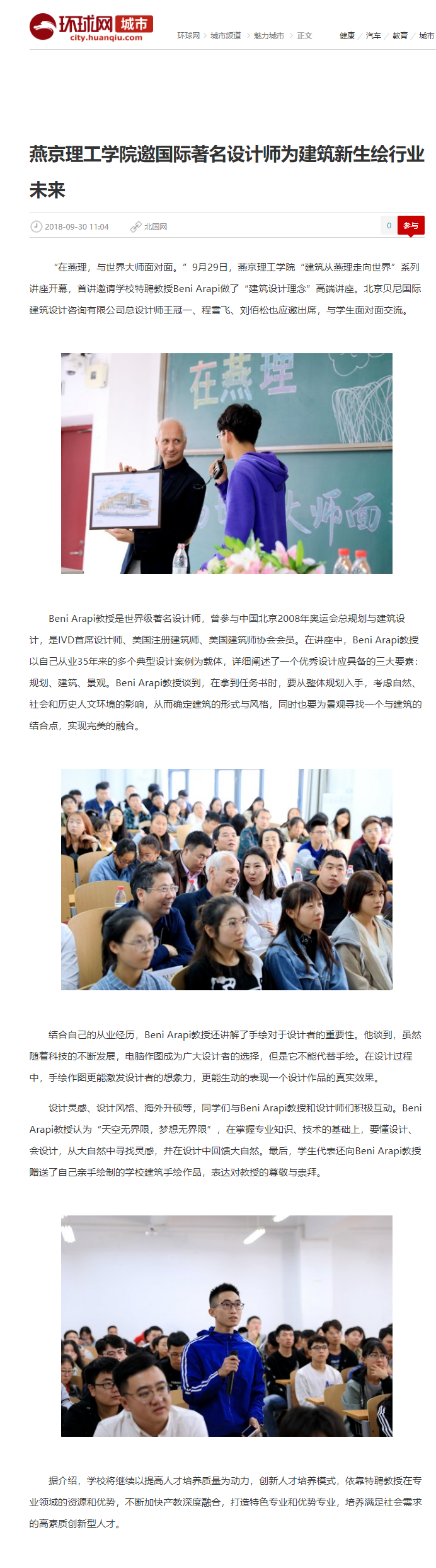环球网燕京理工学院邀国际著名设计师为建筑新生绘行业未来