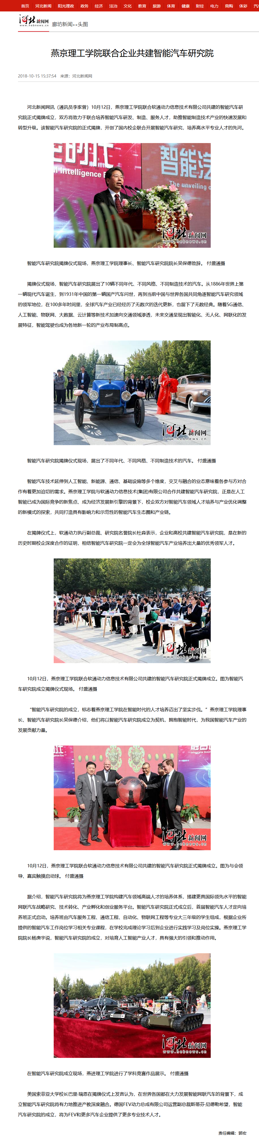 河北日报 河北新闻网:燕京理工学院联合企业共建智能汽车研究院