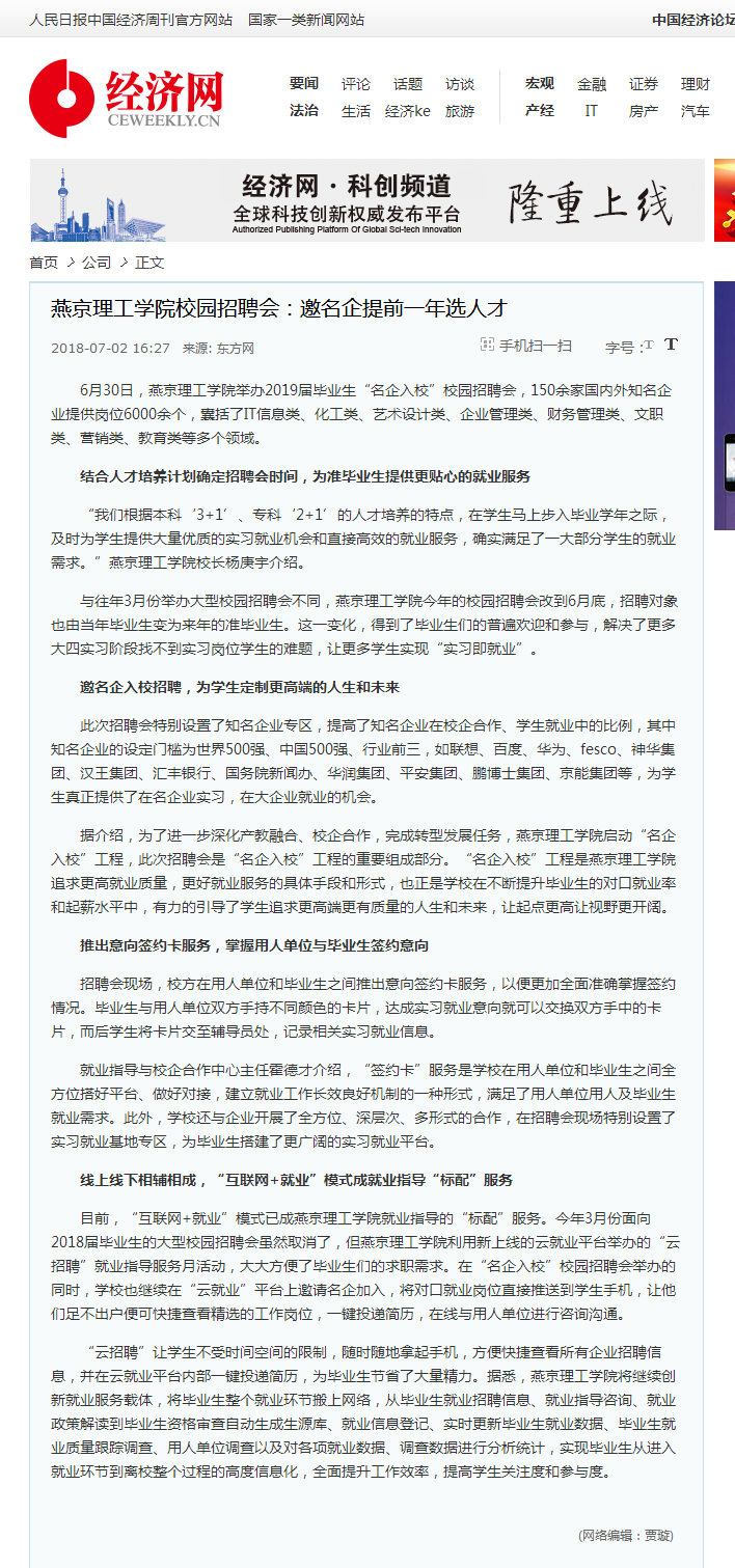 各大主流网站:燕京理工学院校园招聘会:邀名企提前一年选人才