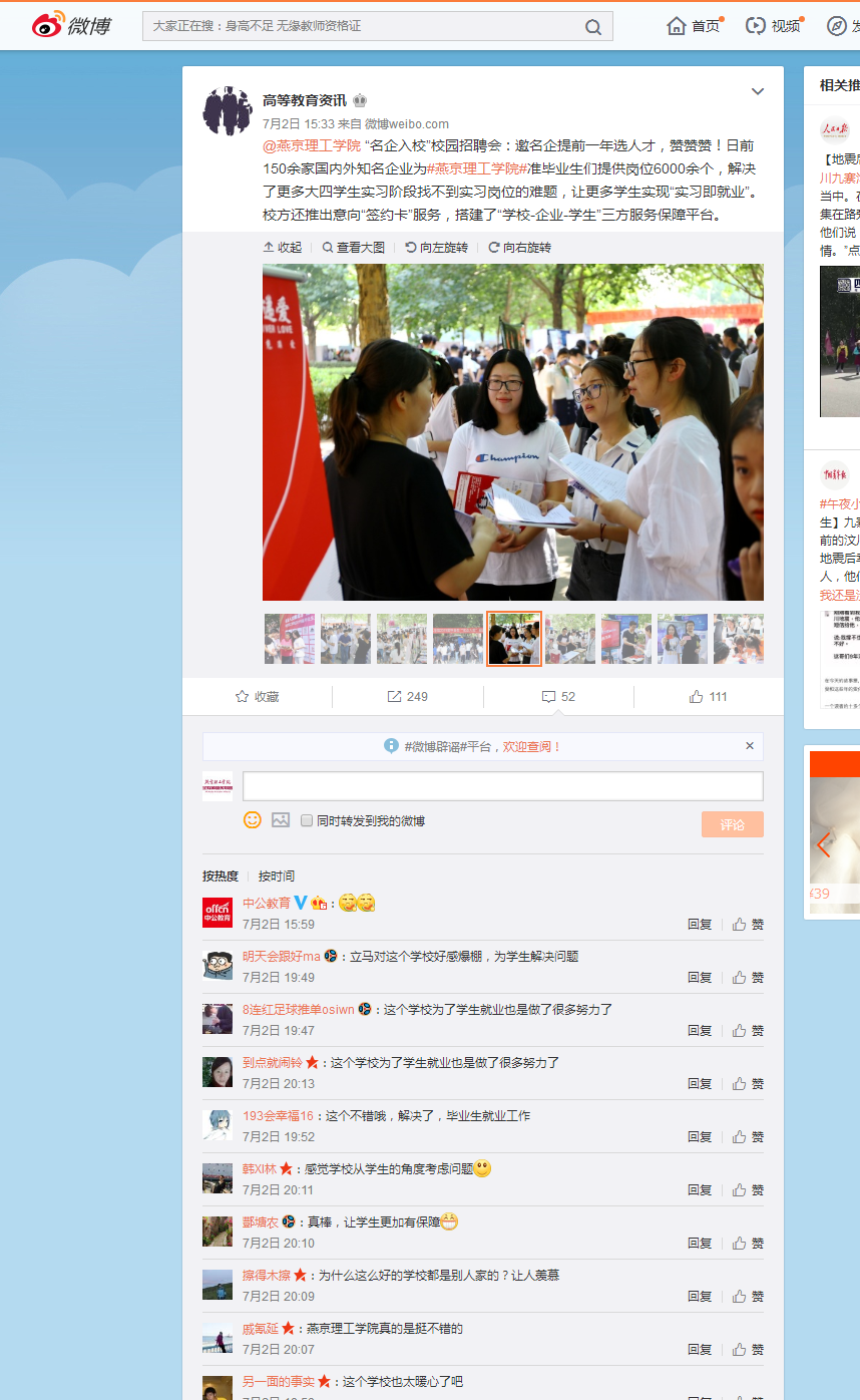 微博大V@高等教育资讯:“名企入校”校园招聘会:邀名企提前一年选人才