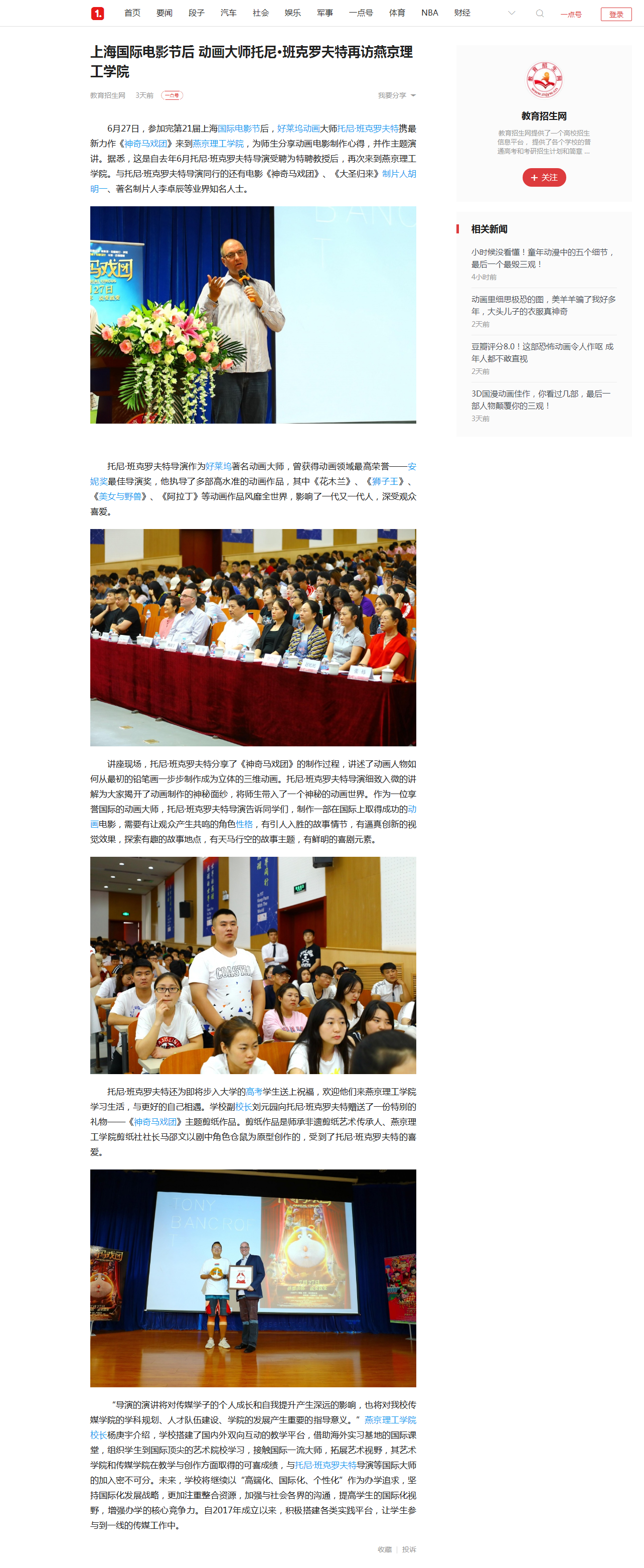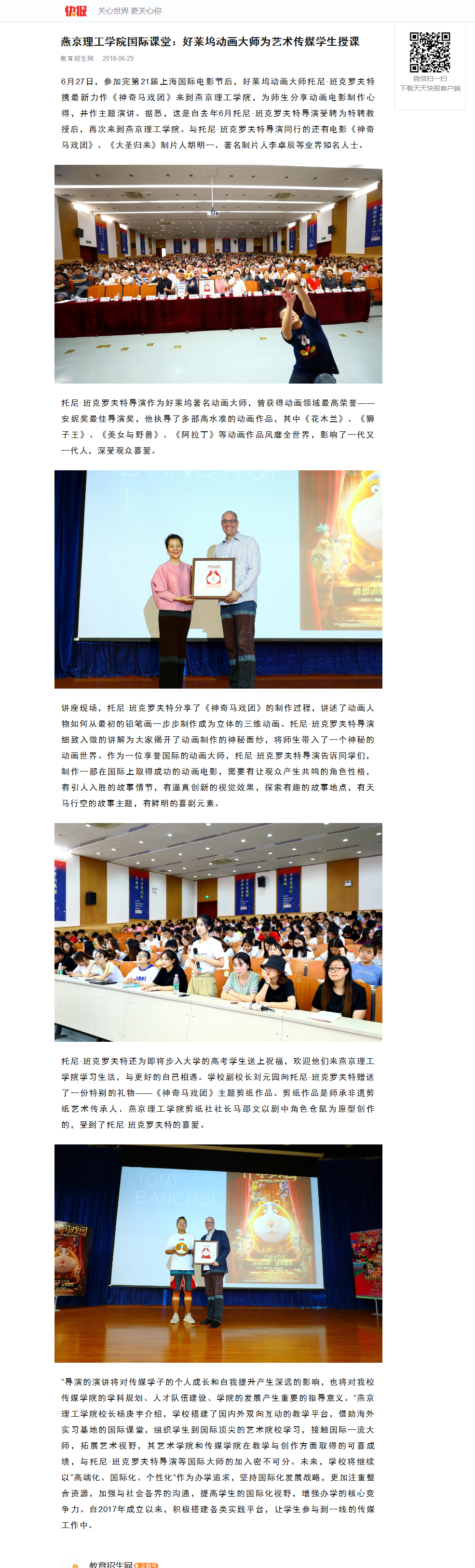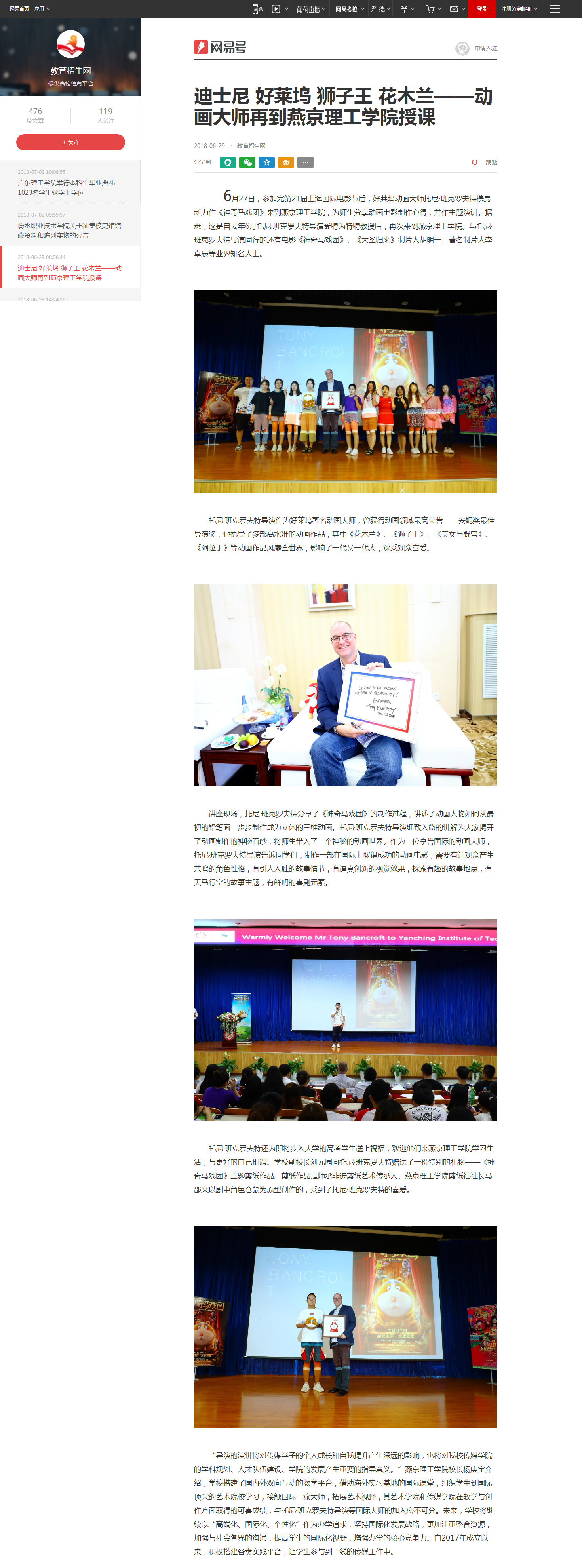 企鹅号、一点资讯等自媒体号:迪士尼 好莱坞 狮子王 花木兰——动画大师再到燕京理工学院授课